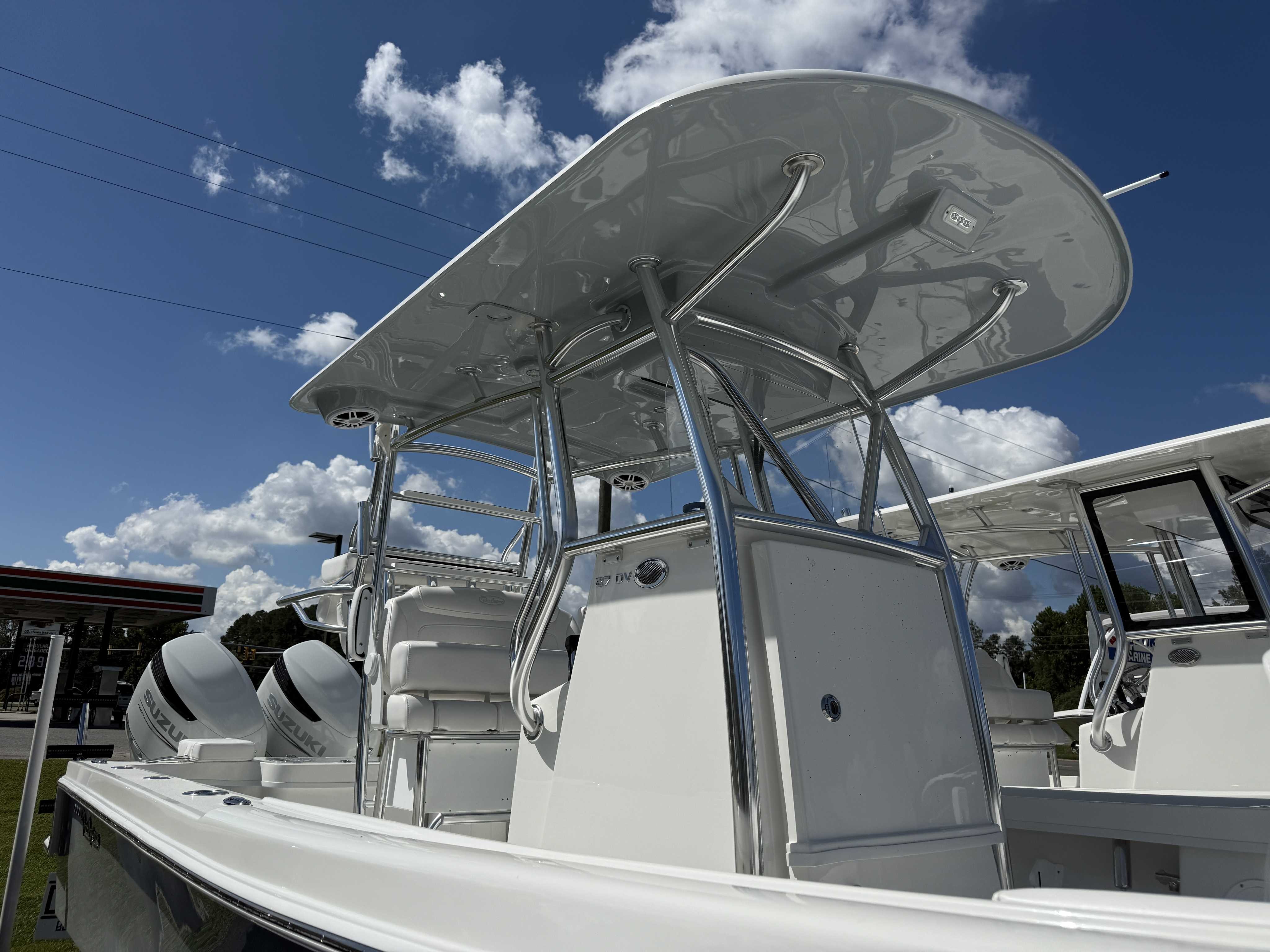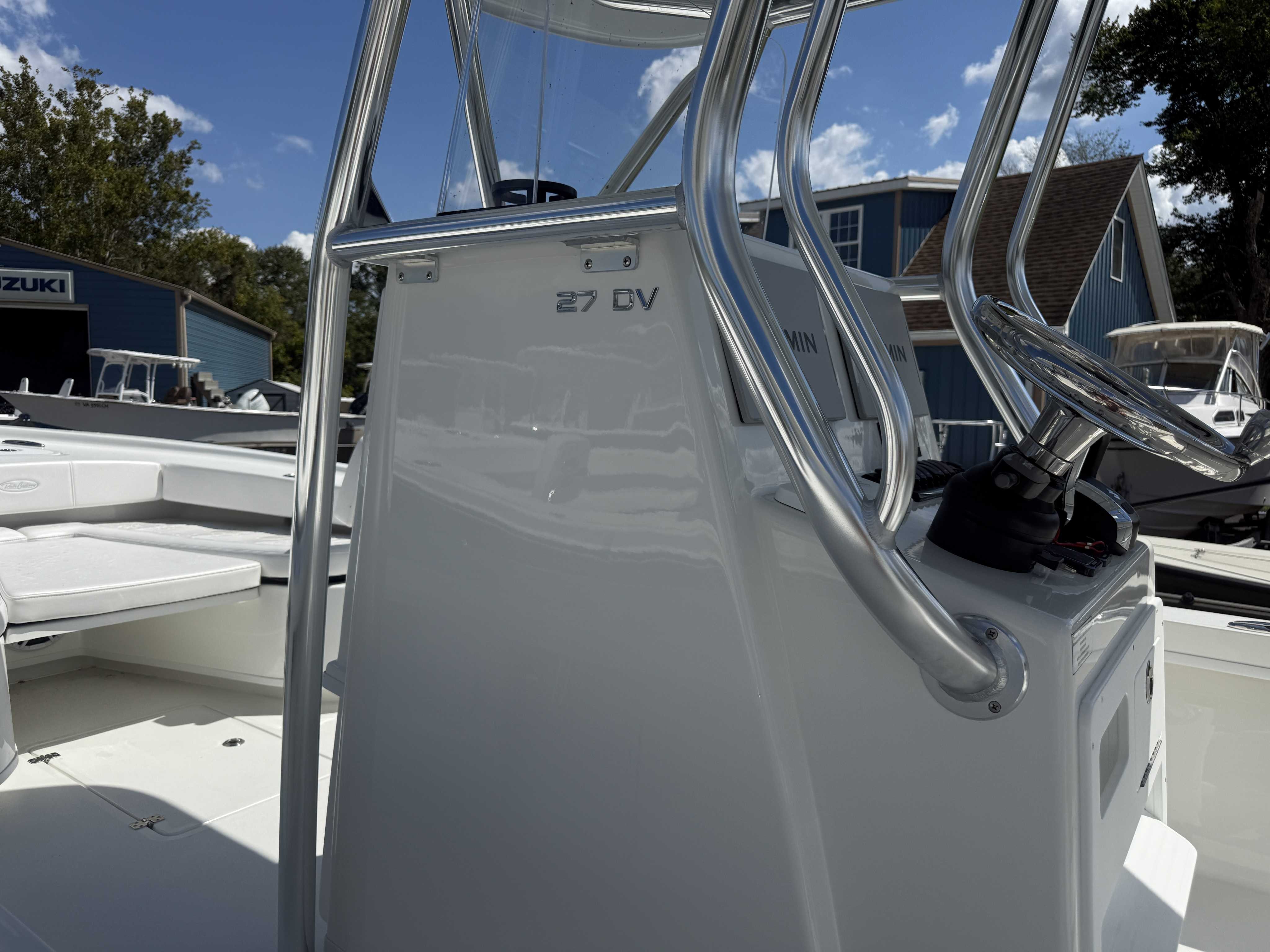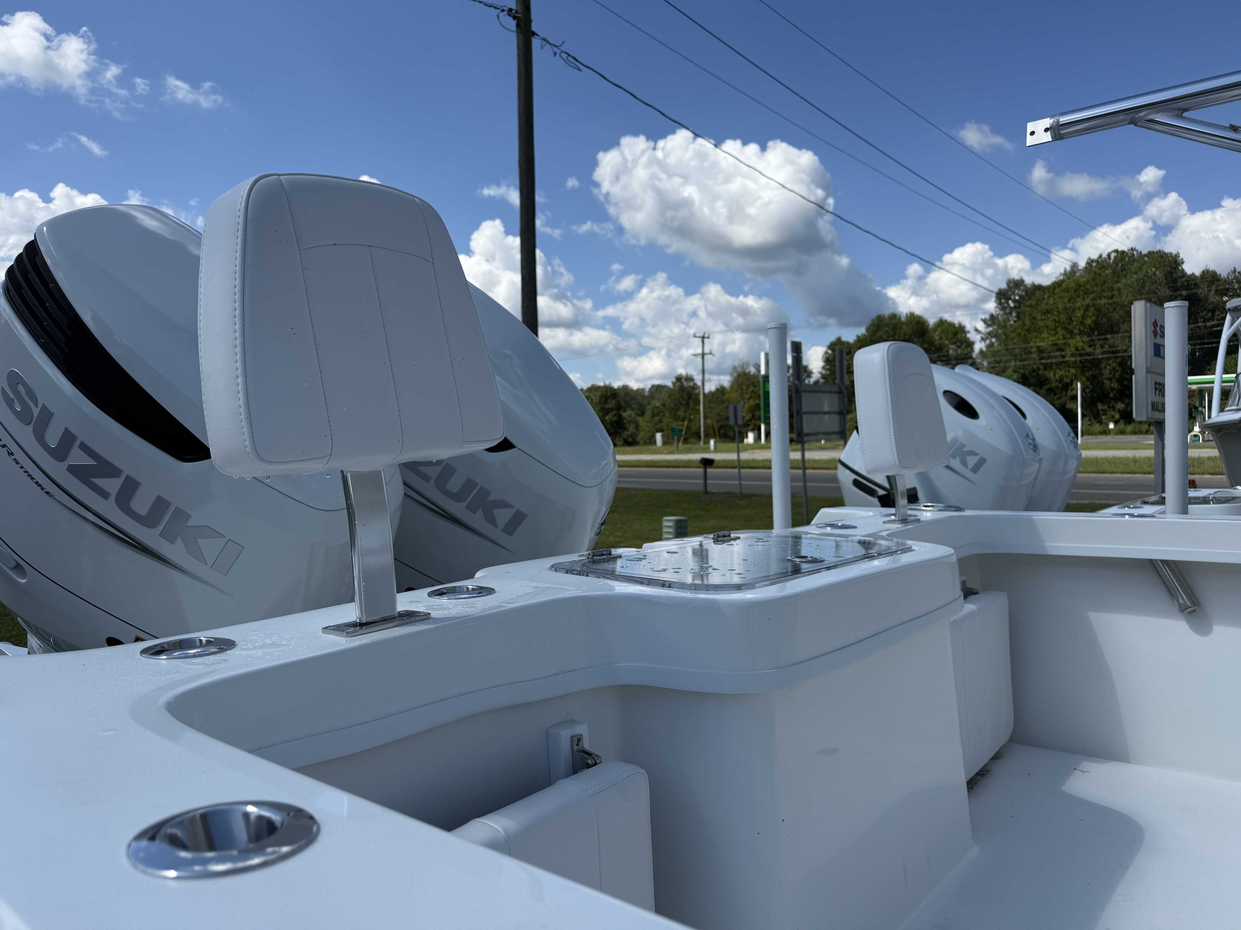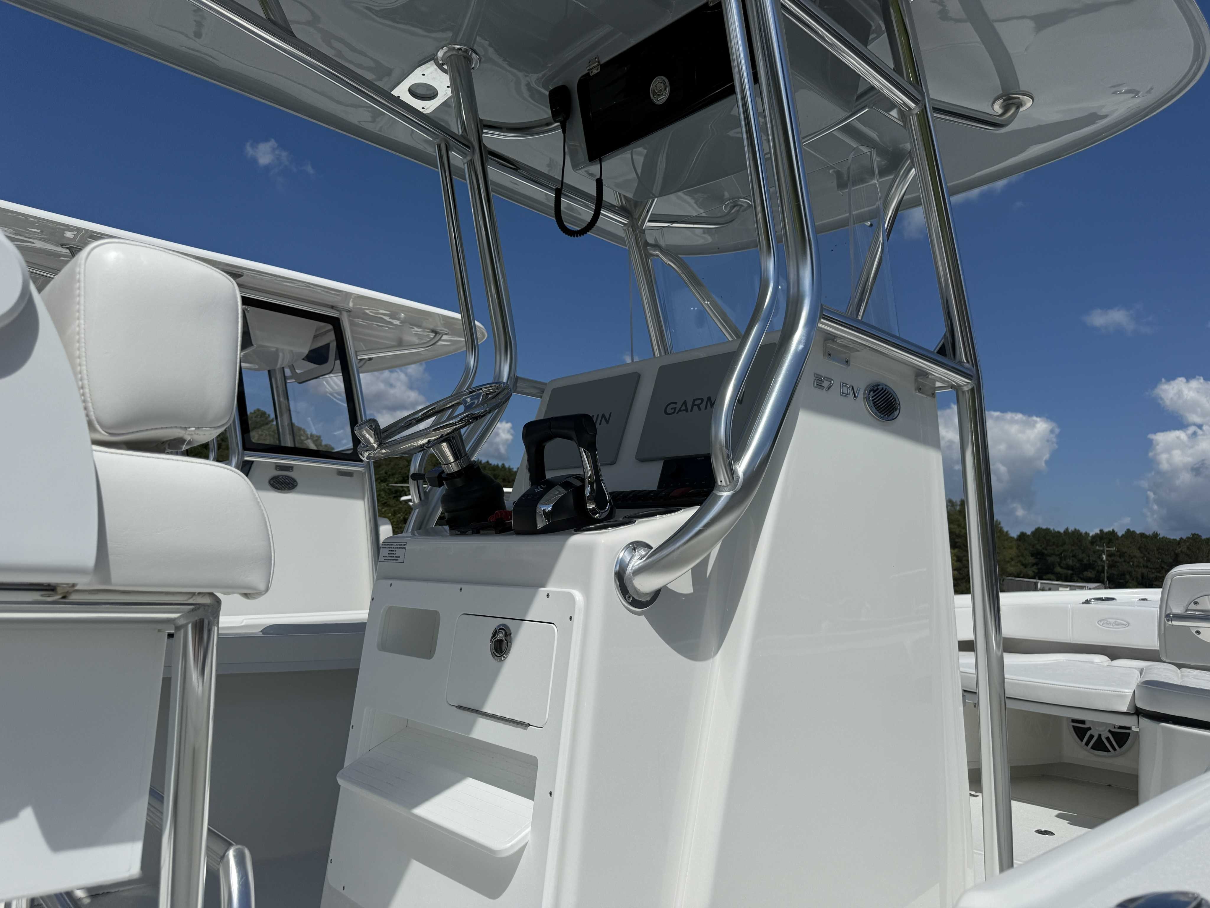 Large console, 50" L x 32" W x 51" H/ 2 cup holders installed on Starboard side of throttle / split door
